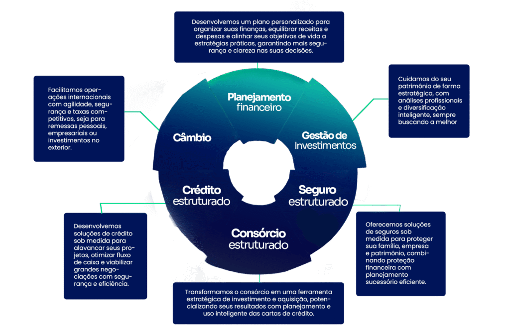 Na Tríade Finance realizamos um atendimento 360º em sua vida financeira, cuidando de cada detalhe com estratégia e visão de longo prazo. Nosso objetivo é simplificar decisões, proteger o patrimônio já conquistado e construir novas oportunidades de crescimento. Mais do que números, entregamos tranquilidade, clareza e confiança para que você foque no que realmente importa: seus sonhos.